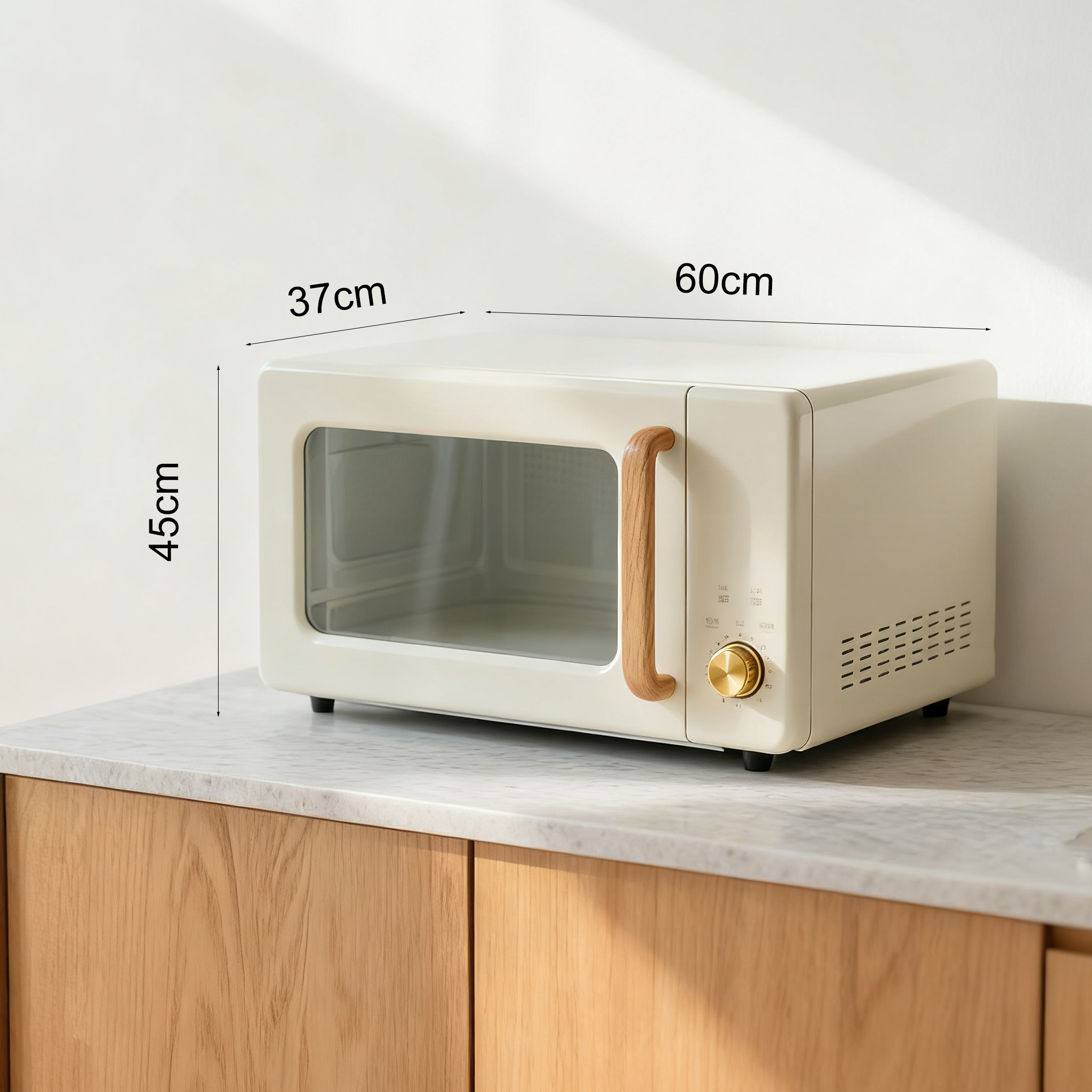 Retro kuchenka mikrofalowa z uchwytem drewnianym